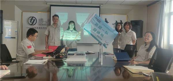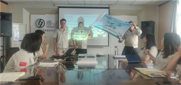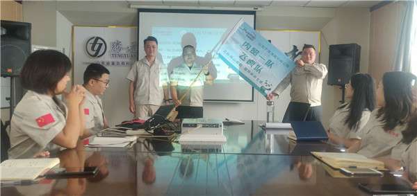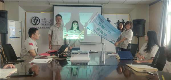 7月13日早上9点,营销部在这里隆重举行了分队授旗仪式,有着霸气队名和响亮口号的四支优秀团队由此正式组建。迎风招展的队旗,慷慨激昂的队员宣誓,军令状上鲜明的文字与现场热烈的气氛,将整个仪式推向高潮,总经理对营销部工作提出了指导建议,号召各团队积极行动起来,以此为契机,井然有序、目标明确地开展竞赛活动,以饱满的热情、昂扬的斗志投身于活动中,抢抓机遇,再立新功!总经理的讲话极大鼓舞了营销四队的士气,为本次仪式画上了一个圆满的句号!